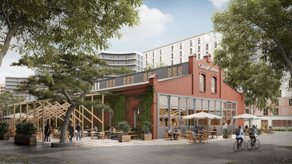 Ve spolupráci se společností SORAVIA se společnost CMb.industries v roce 2017 ucházela o bývalou kočárovnu Wolfganggasse ve 12. obvodu a získala zakázku od Vídeňského fondu bydlení. V jejím průběhu byla vypracována koncepce využití a převzata prozatímní správa. Dnes nabízí Gleis//Garten pestrou nabídku s 9 stánky s jídlem, vlastním pivovarem, dvěma bary a nově otevřenou zahrádkou pro hosty. Na prvním vídeňském trhu s jídlem se pod palmami konají akce a víkendové brunche.